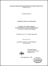 Розробка методики оцінки геомеханічного стану гірських порід у процесі буріння свердловин : дис. ... канд. техн. наук : спец. 05.15.10 "Буріння свердловин" : Дата захисту 30.06.00 / М. В. Гордійчук. - Івано-Франківськ, 1999. - 143 с. - 132-138.