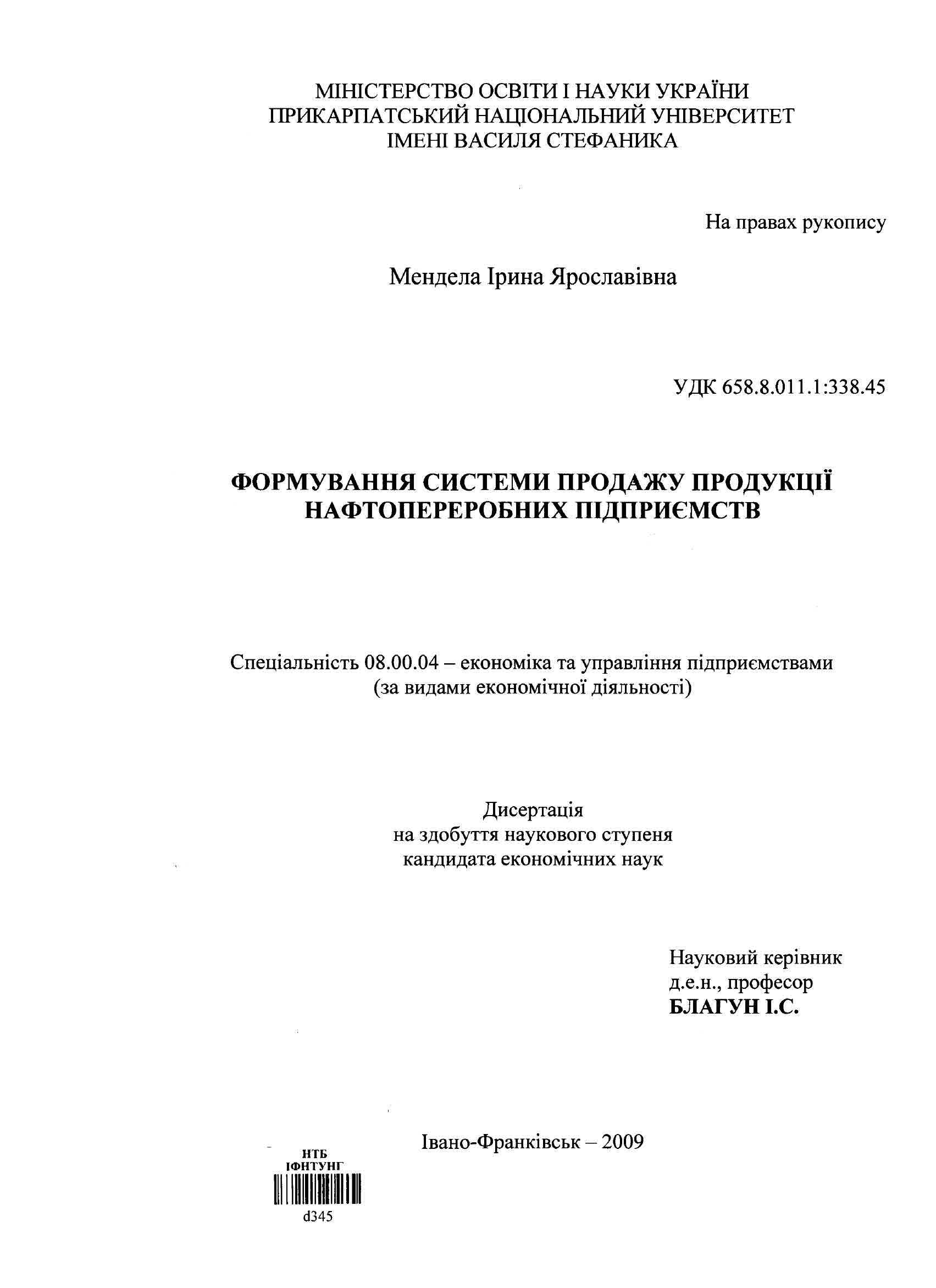 Формування системи продажу продукції нафтопереробних підприємств : дис. ... канд. екон. наук : спец. 08.00.04 "Економіка та управління підприємствами (за видами економічноіі діяльності)" : Дата захисту 17.11.09 / І. Я. Мендела. - Івано-Франківськ, 2009. - 204 с. - 182-190.