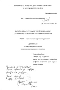 Інституційна система Європейського Союзу: становлення та розвиток в умовах розширення : дис. ... канд. наук з держ. упр. : спец. 25.00.01 "Теорія та історія державного управління" : Дата захисту 10.07.15 / О. В. Пістракевич. - К., 2015. - 202 с. - 173-193.